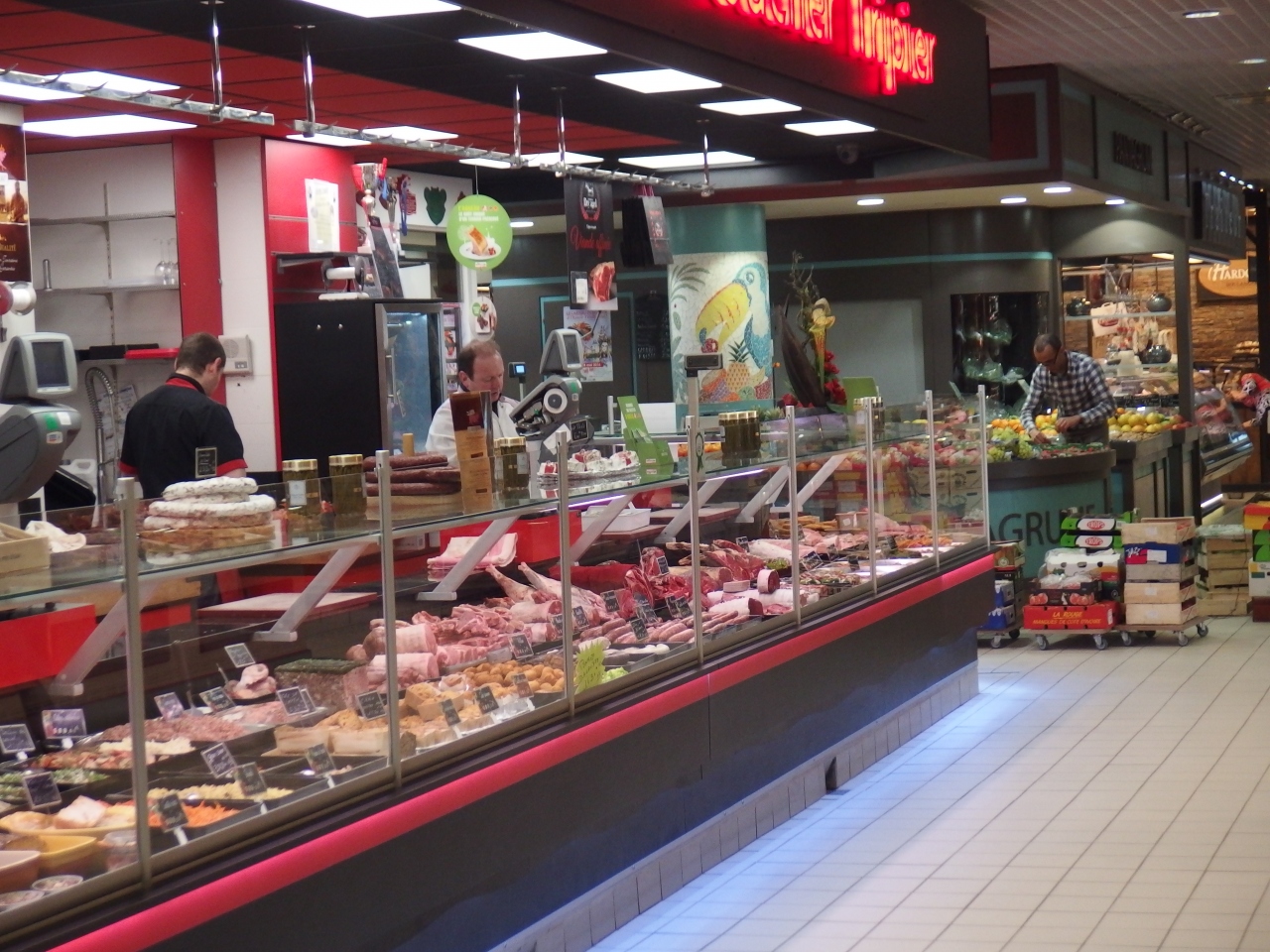 食肉・食肉加工品、チーズの品揃えが豊富。魚、野菜など、生鮮品はだいたい揃う。値段はスーパーと同等かやや高い感じもするが、品質はいいし、選択の幅は遥かに広い。量の加減もできるので、何日か滞在して、自炊するばあいは便利。そうでなくても、煮炊きしないで食べられるものも多いので、一度来訪の価値はある。- 旅行時期