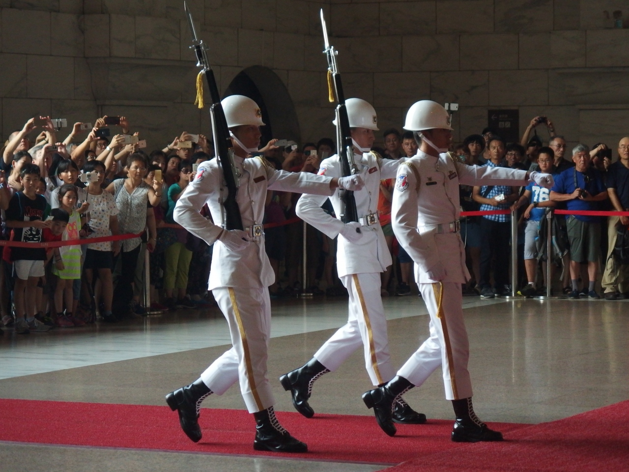 衛兵の交代式は荘厳。旧日本陸軍の台湾駐留歩兵第一連隊の施設跡地に建設された、巨大な建物、広大な広場は圧巻です。- 旅行時期