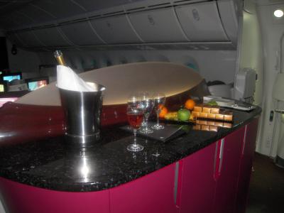 さて、いくつかの機材を利用する機会に恵まれたが、B787やA380の最新の機材はシートの使い勝手、快適性など非常に質が高い。ただ、せっかくのバーサービスは、羽田発の深夜便はクローズ、ドーハ→CDG(A380)は開いていたが、空いていることもあって、CA多数と1名か2名の乗客に占拠され、なかなかアプローチしづらかった。セルフでいいので、水を中心に飲み物がすぐ取れるようにしてもらえれば十分。また帰りのB787のバー(セルフ)もシャンパンと軽食はおいてあるが、万人が必要とする水がない。いちいち頼めばすぐ気持よく持ってきてはくれるが、ちょっと本末転倒、設備を生かし切っていない。
