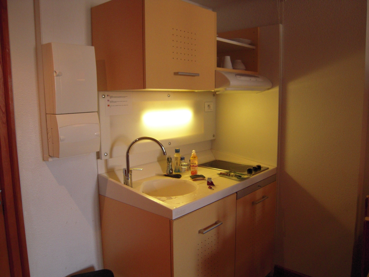 簡易キッチン、冷蔵庫、ある程度清潔な室内、日本メーカーのエアコンと最低限の快適な環境はととのっているが、100ユーロ未満での価格帯なので、ある程度の割り切りは必要。