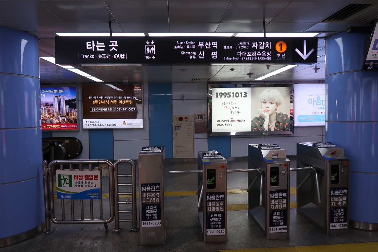 ただし、釜山の地下鉄はエスカレーターが少なく、大きな荷物をもって長い階段を上り下りするのは辛い。また、自動改札機もカーテン式のバーなので、荷物を持って通るにはコツがいる。バスやタクシーなどとうまく使い分けたい。