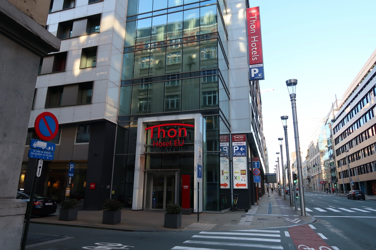 チェックインなどフロント業務は、隣接するトーン ホテル EU(Thon Hotel EU)に集約されているのでまずはホテルフロントへ。