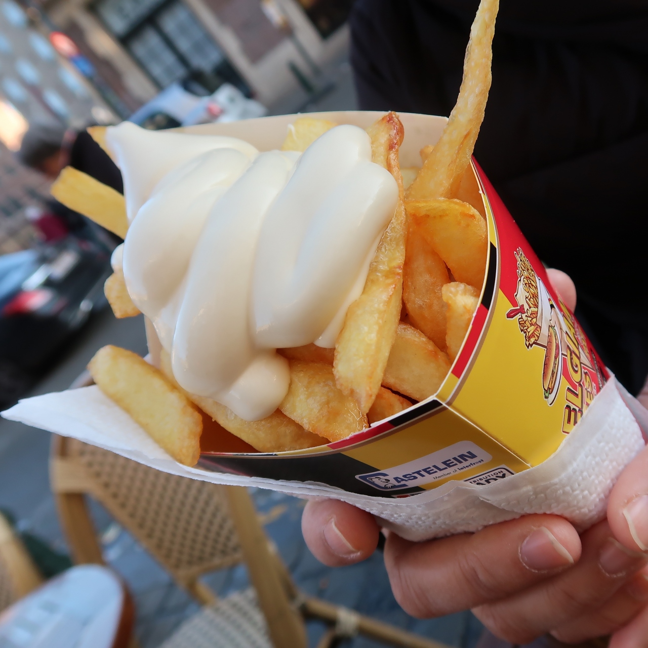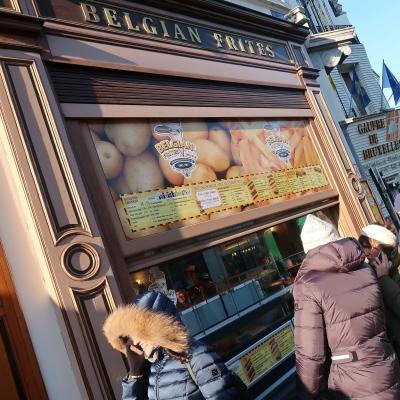 ベルギー名物フリッツ専門のファストフード店。レストランではどんな料理にも付け合せでついてくるし、ここでなくても食べられるのだが、屋外でおやつ代わりにつまむのも悪くない。量が多いしマヨネーズなどのソースもたっぷりなので、日本人なら2人で一つ、足りなければ後で別のソーズを試す、というのがいいと思います。