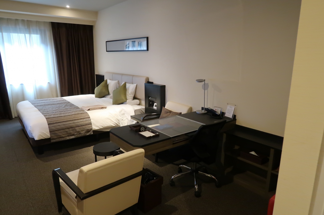 宿泊した一番下のランクの部屋でも34㎡、十分な広さがあります(ただし、バスタブ無しシャワーのみ)。