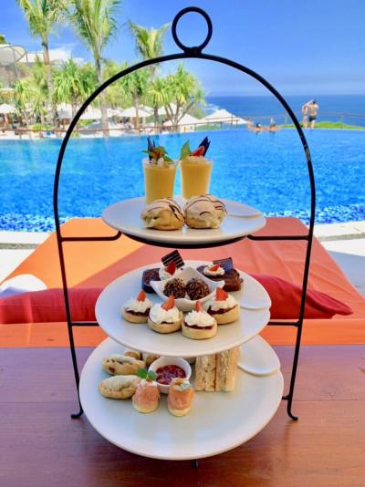 プールについて。とても良い。景色も良いし、雰囲気も良い。どこで写真をとっても映える。プールサイドでハイティーを堪能し、優雅な時間を過ごすことが出来、大満足!!ただし、一番奥のインフィニティプールは海側のみ浅く、それ以外の部分は深いので海側へ行くまでが大変。