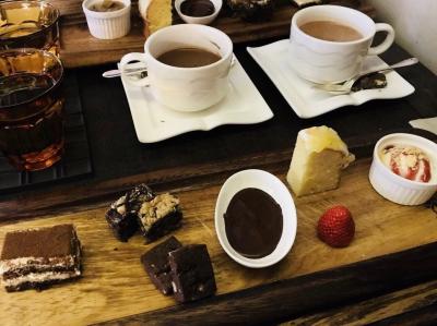 店の外壁には天使の羽。店内もオシャレなディスプレイ。量り売りのチョコレートもあるが気をつけないと一気にたくさん出てくることがあるため慎重に!店員さんにキーナンバーをもらって秘密の部屋へ。ホットチョコレートはチョコレートの種類などが選べるが、名前だけでは味の特徴がわからず適当に選択。思ったより苦めだった。