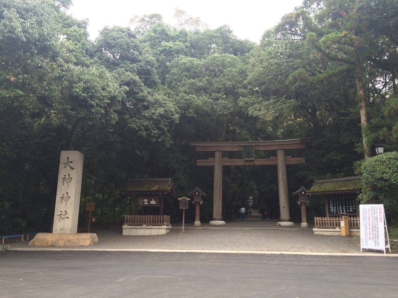先に桜井市埋蔵文化財センターによったのですが、そこから大鳥居を眺めると三輪山がそびえていて圧巻の景色。