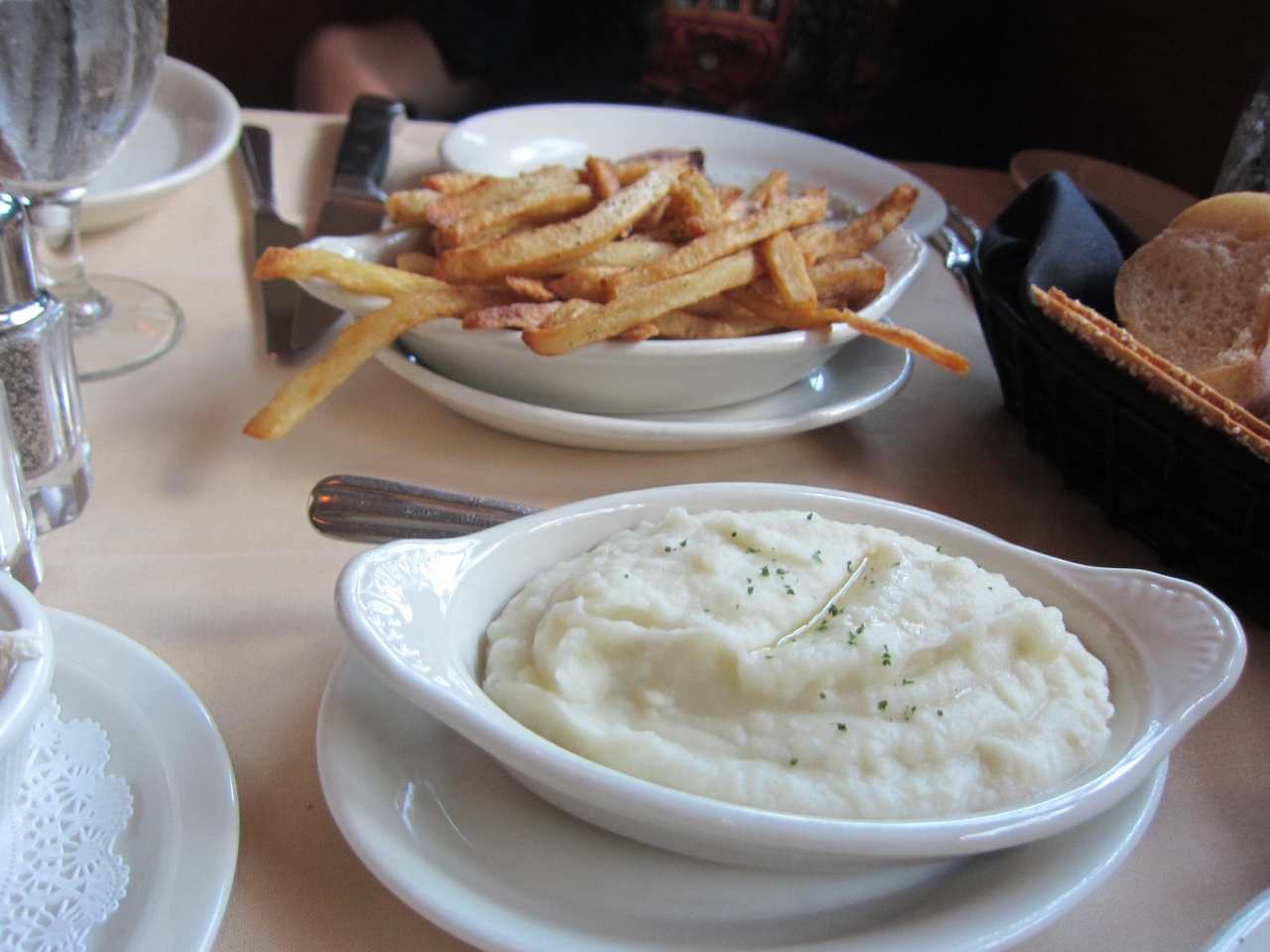 コースをサラダ、付け合わせをマッシュポテトにしてみんなでシェア