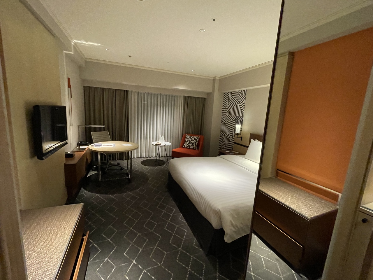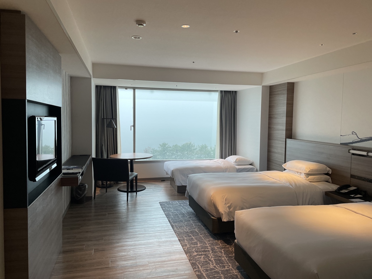 ホテルは落ち着いた佇まいで、上品な感じと近代的な感じが上手く調和している。客室は綺麗に整備されており、外の眺めも不悪。