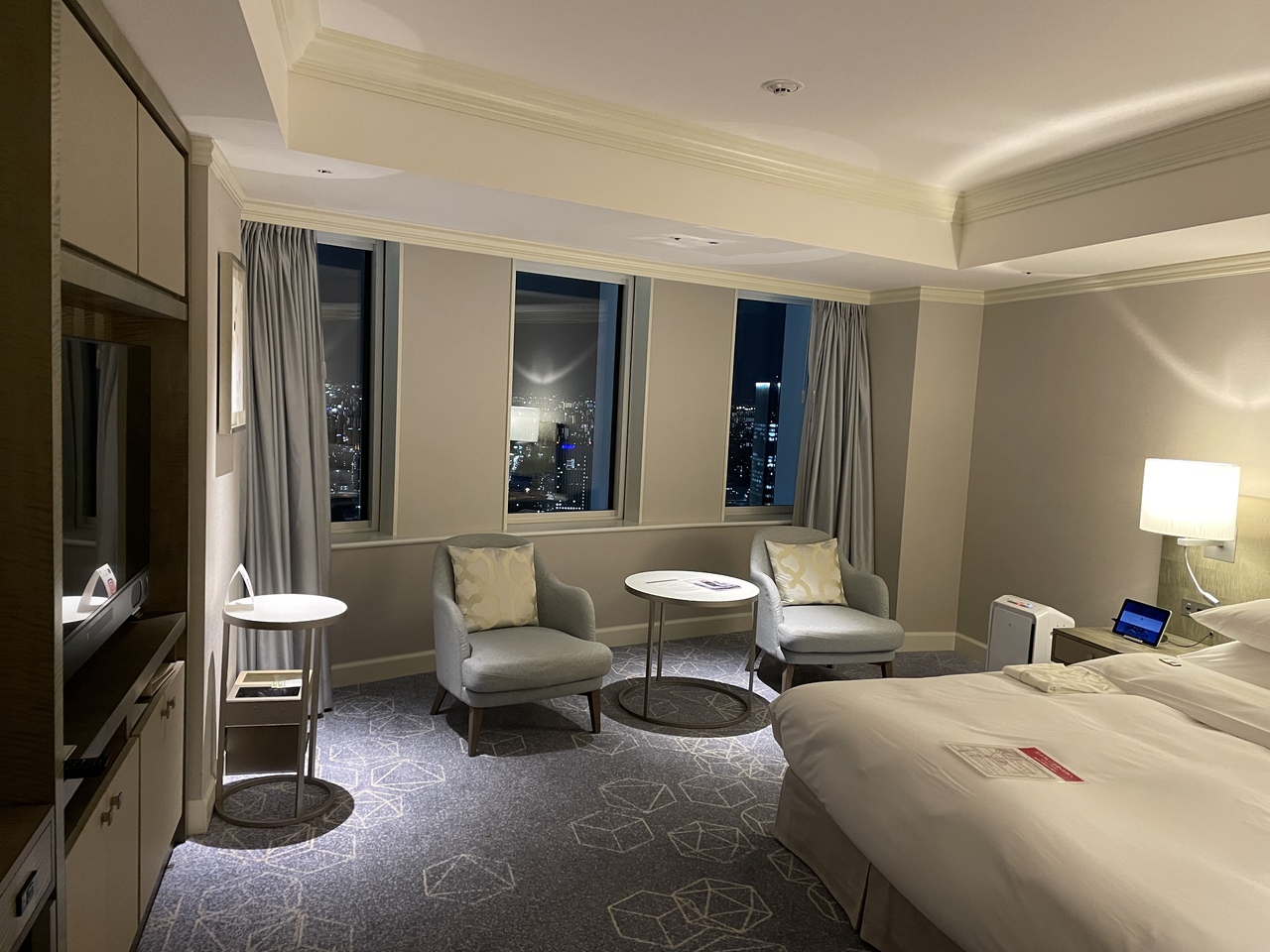 部屋はベランダ付きにアップグレードされたおり、浜離宮を見下ろせる景観は素晴らしい。