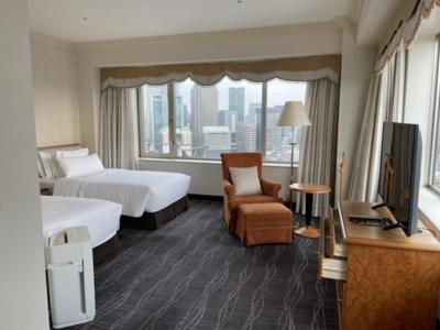 部屋はベランダ付きにアップグレードされたおり、浜離宮を見下ろせる景観は素晴らしい。