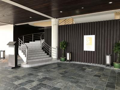 渋滞にもよるが、空港から車で1時間程度、白を貴重にした立派な建物。市街からはやや離れているので食事、買い物などはやや不便ながら、レストランはいくつかあり、レベルも満足のゆくレベル。朝食のメニューも豊富、部屋も高級感あり綺麗。インドネシアの中では満足度の高いホテル。