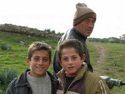アパメア遺跡の中にある喫茶店の近くの人たちです。赤ちゃんはかわいいです...