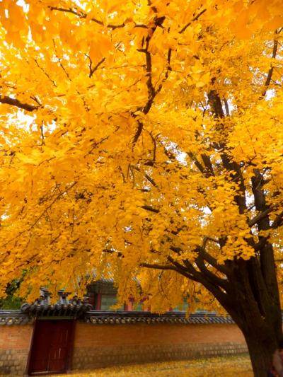 古い石垣と黄金色の銀杏色のコントラストが本当に美しい。