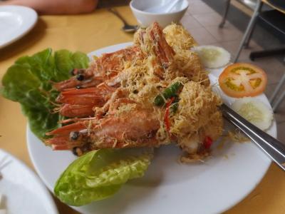 5.0ここは何を食べてもまず失敗が無いと思います。特にタイガープローンは必食!私達は一番人気のバター揚げにしてみました。ちなみにお値段は 100g RM18今回は3尾...もっと見る