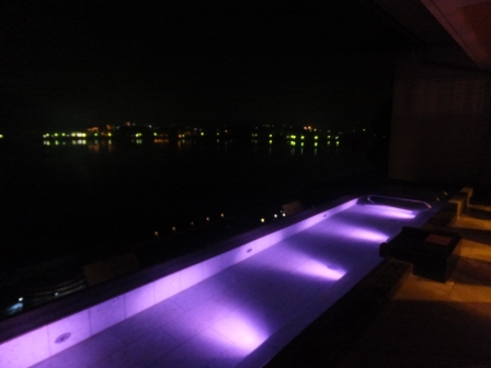 ただし、ホテルの敷地内には大きなプールに沢山の白いヨットの帆のような日除け、そして緑豊かな環境は一瞬ここは砂漠!?と思ってしまいます。