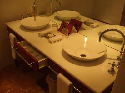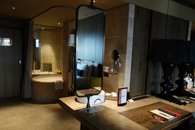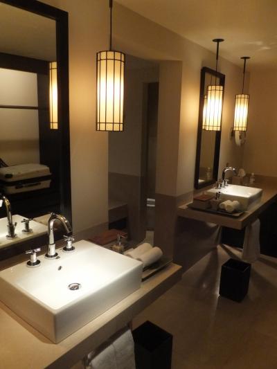 お部屋の2つの洗面はそれぞれ男性用(髭剃りなどがあり)と女性用(ボディークリームや爪ヤスリまである)異なるアメニティーが既にセッティングされてました。