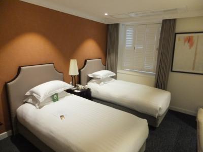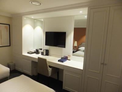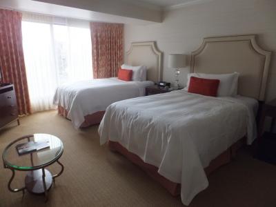 老舗のホテルらしくエントランスとロビーが優雅ですが、お部屋は可もなく不可もなくといった、シンプルなインテリアです。