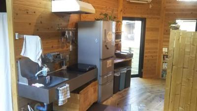 2階には共用のキッチンがあり、電化製品や調理器具、調味料も一通り揃っていました。