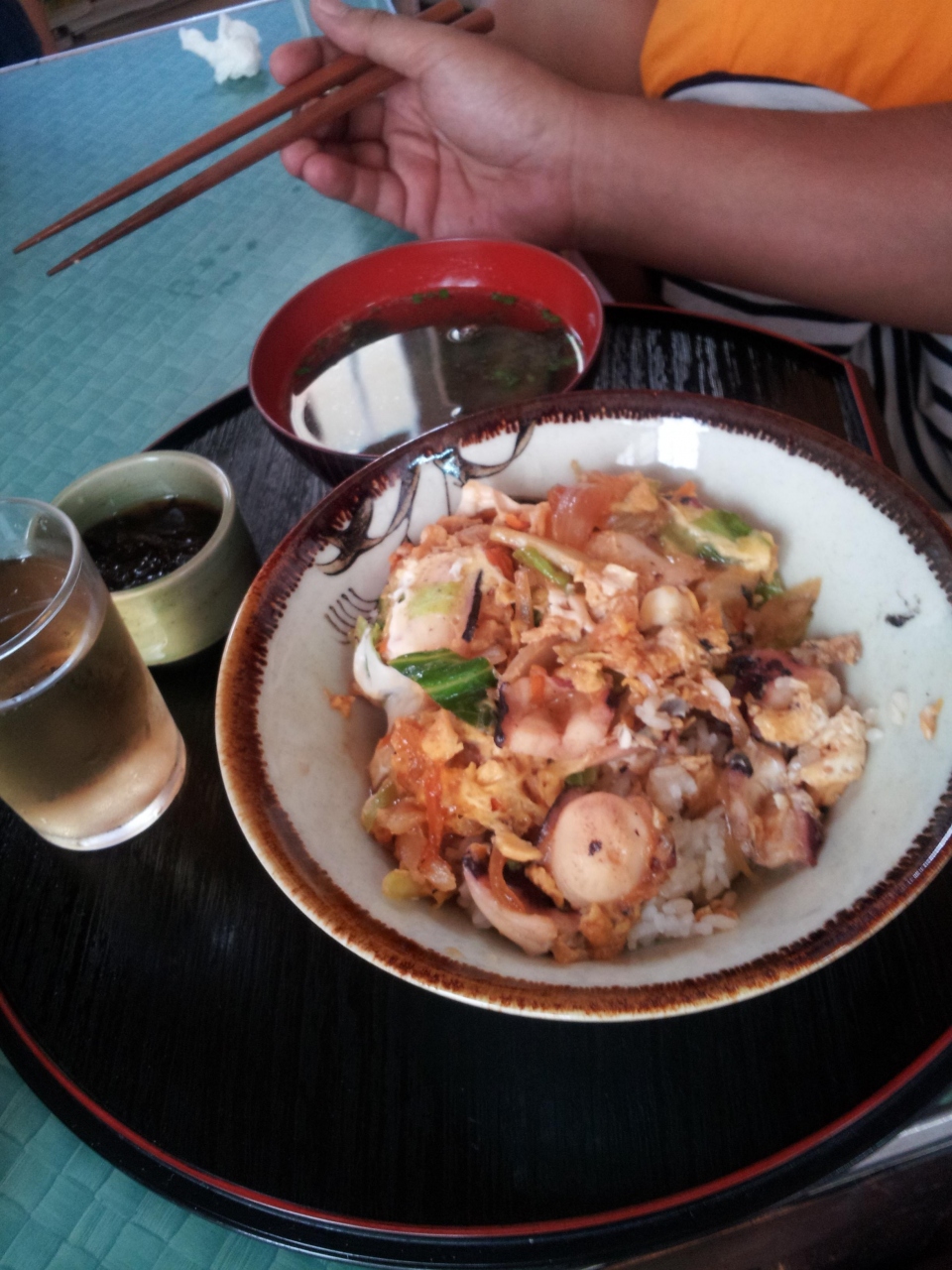 宮古島に行く前から気になってたお店。お盆の午後14時頃に行きましたが予想に反して空いてました。なので、子ども達とゆっくり食べることができました。落ち着いてゆっくりしすぎてパパは昼寝しそうでした。料理のお味はどれも美味しくて真っ黒なタコ墨の焼きそばは衝撃を受けましたがすごくおいしかったです。また行きたいお店のひとつです。
