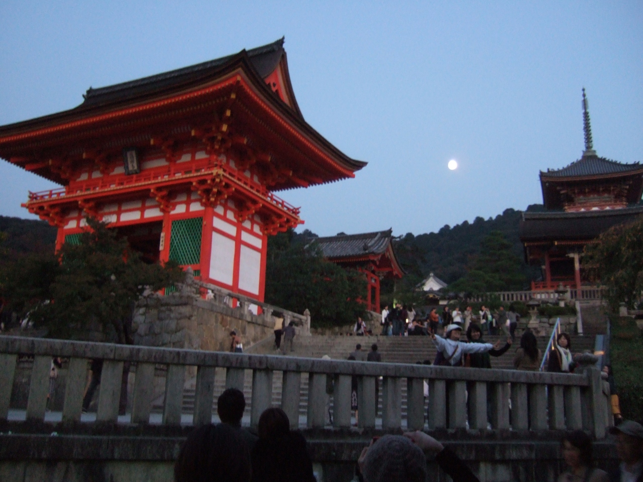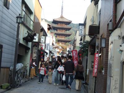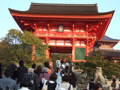 清水寺は今回で二回目になります。何度来てもとても混んでいるなという印象を受けます。ですが、清水寺に向かう坂道は、両脇に様々なお店屋さんが並んでいて、混んでいるのも忘れてお寺に着く前からワクワク感が満載です。清水の舞台から見た景色も絶景ですし、建物自体が歴史的雰囲気満載で、気がつくとあっという間に時間が過ぎていました。清水寺は、京都東山にある音羽山に古代から霊験あらたかな霊水(湧き水)の地に、延鎮上人が手彫りの観音像を祀ったことが起源ですが、そのような歴史を知らなくても、十分に楽しめると思います。日が沈みゆく清水寺もとても幻想的できれいでした。