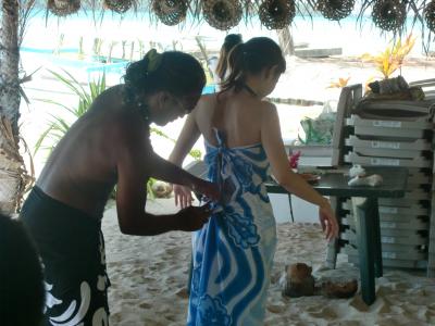 モツピクニックとは小さい島へピクニックに行こう!のような意味です。まず何箇所かでシュノーケリングをさせてもらえます。珊瑚も見に行けました。色はあまり目立つ色の珊瑚ではなかったですが、初めてでしたので感動しました。サメ(人は襲わない)も見ることができました。そして小さな島に到着してから昼食です。現地の料理を教えてくれたり、パレオの巻き方を教えてくれたり、とても楽しいピクニックでした。