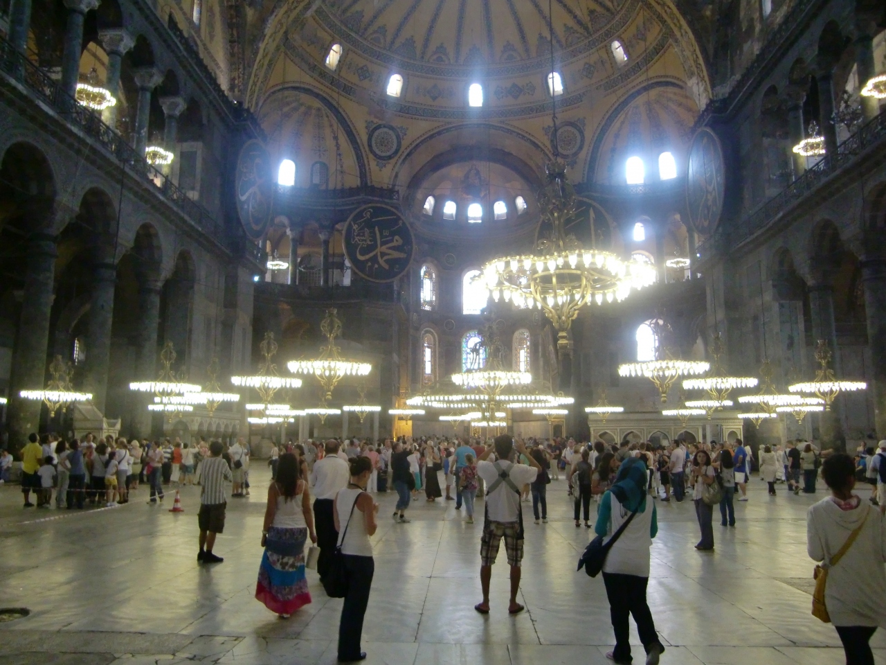 アヤソフィアはとても広くて内部が綺麗で驚きました。また、以前訪れた時は二回には上がれなかったのですが、今回は二階に上がることもできたので、下の景色が見られてとても良かったです。上から見るとまた新たな発見があります。さらに、聖母マリアの手形の柱にもチャレンジしてみました。くぼみに親指を入れて、あとの4本指の指先で、柱から離すことなくぐるりと円を描けたら願いがかなうとも言われています。ずいぶん並びましたが、しっかりできました!