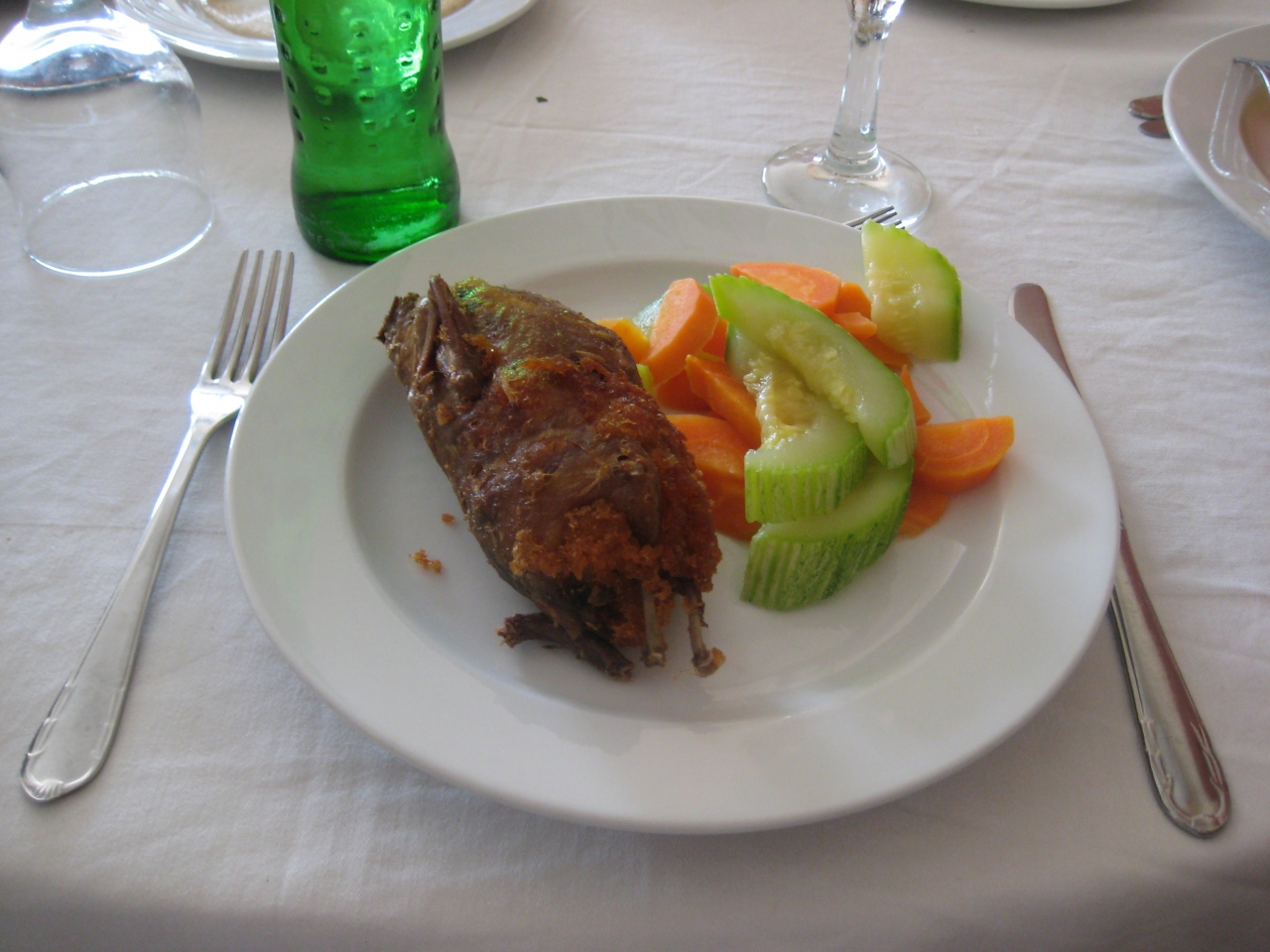エジプトに来たらなんといってもハト料理が有名だと思います。日本ではハトを食する習慣がないので、私も料理が出てくるまで本当に不安でした。友人はハト自体が苦手なので、まさか食べるなんてという感じでした。ですが、出てきたハト料理は意外と見られるもので安心しました。味は脂っぽくて肉が少ないですが、チキンみたいで美味しかったです。骨が多いので、食べるのに一苦労でした。ですが、エジプトの方にとっては高級料理だと伺いました。