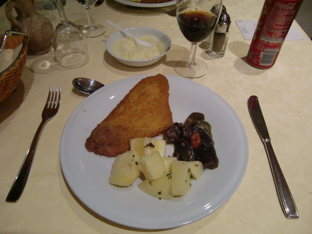 イタリアなので料理に期待していったのですが、本当にどこのホテル、レストランでも、料理は大満足でした。ちょっと女性には多すぎるかなとも思いますが、美味しくて気が付くと完食できているということがほとんどでした。こちらのホテルは、部屋は少し狭かった気もしますが、二人で協力すれば、トランクを二つ広げるスペースも十分確保できます。問題ないホテルでした。