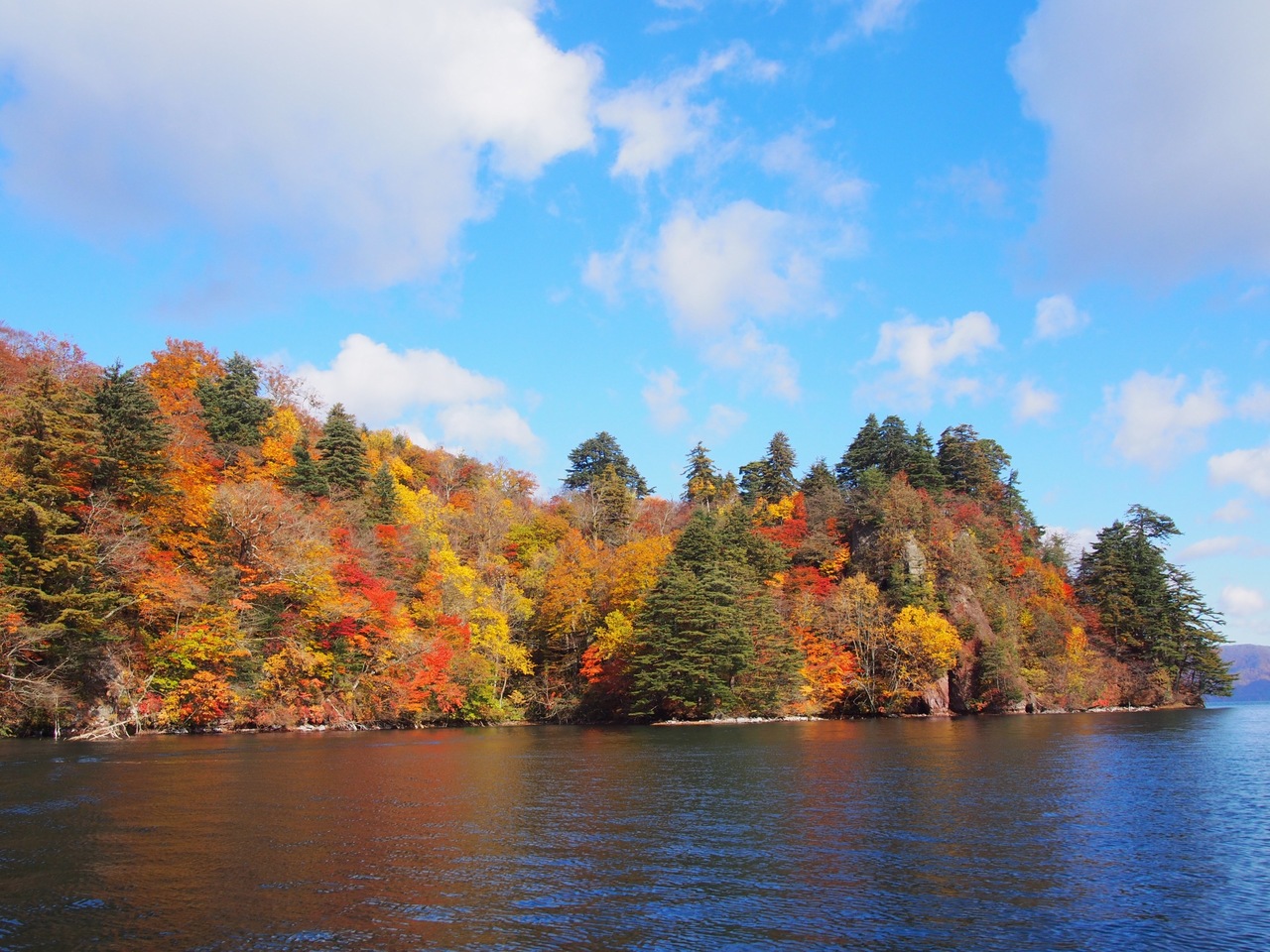 紅葉の十和田湖を楽しむためにボートツアーに参加しました。遊覧船よりも岸ギリギリまで近づくことができ、紅葉をより近くで楽しむことができました。また、結構なスピードが出るので、湖を風を切って走っていくのがとても気持ちよく、楽しかったです。