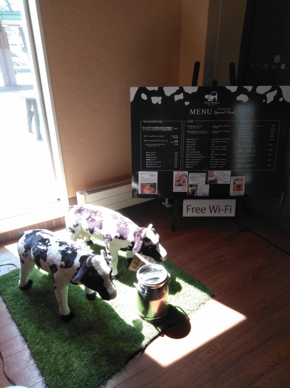 帯広畜産大学の中にあるカフェですが、一般の人も利用することができました。店内は明るく綺麗で、とても落ち着いた雰囲気です。