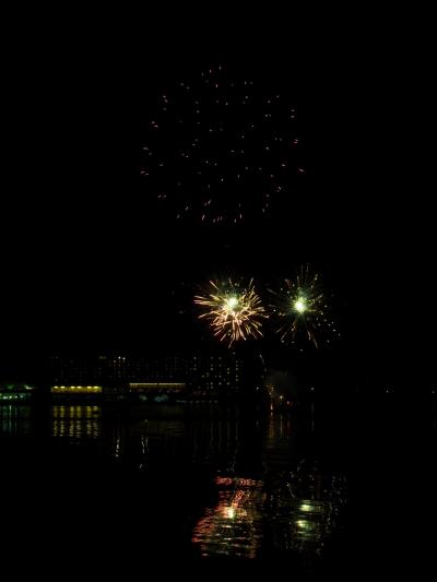 至近距離から花火を見ることができ、水面に映る花火がとても綺麗でした。