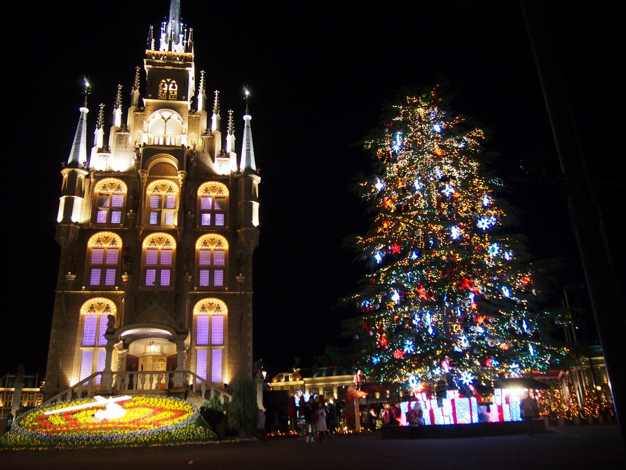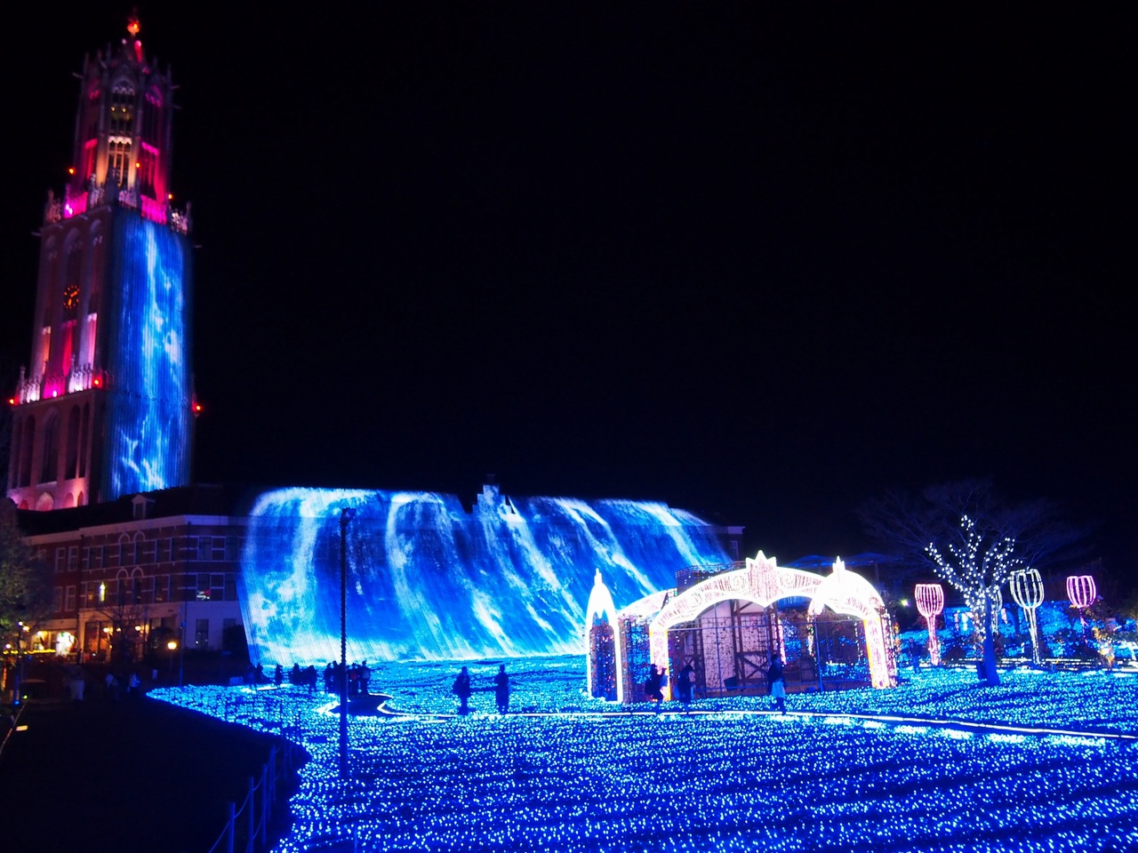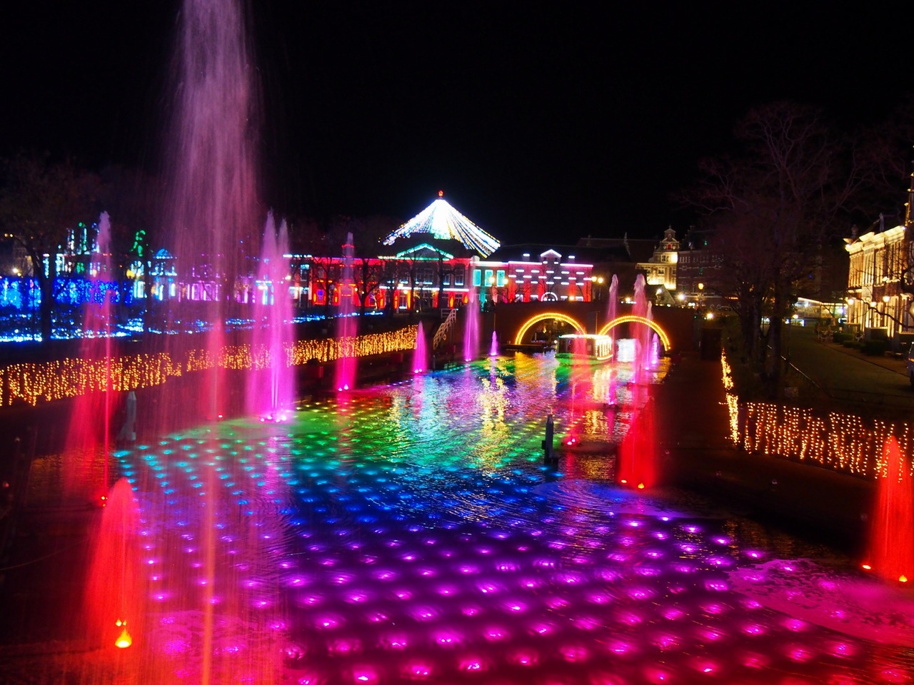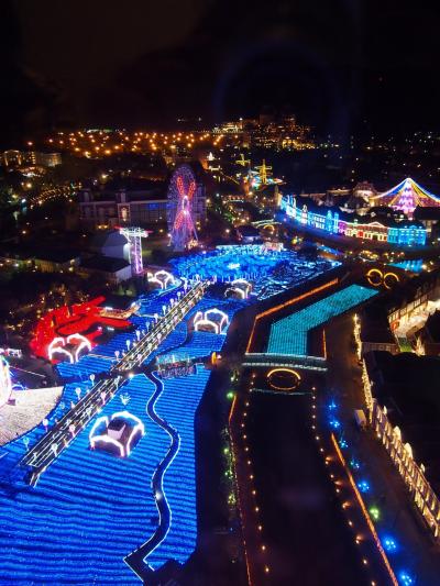 広い園内がいろいろなテーマのイルミネーションで鮮やかに照らされていてとても綺麗でした。