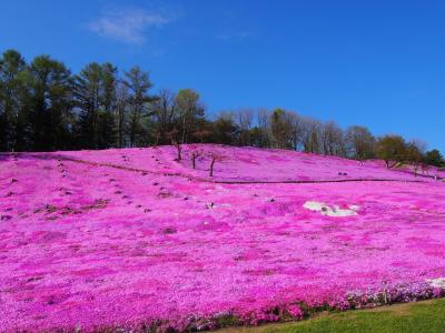 5月は斜面一帯に芝桜が咲いていました。白と鮮やかなピンクの芝桜がとても綺麗です。チューリップも咲いていて、芝桜とチューリップの組み合わせが絶景でした。