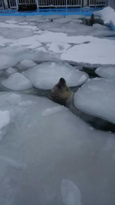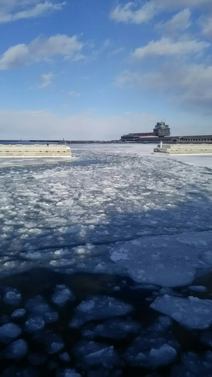港内の海面が氷っていて、見た目では流氷と違いがわかりませんでした。