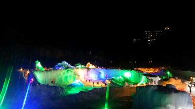すべてが氷でできています。氷の階段や氷柱がライトアップされているのはとても綺麗でした。