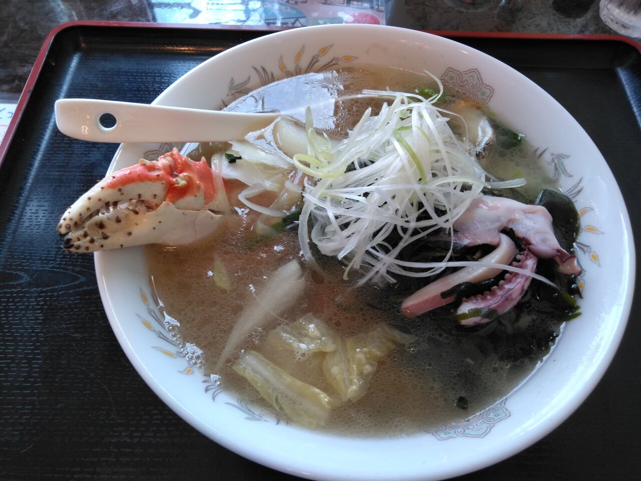 襟裳岬の駐車場横にある、食堂とお土産屋さんが併設された施設です。食堂には海鮮丼や定食、ラーメンなど海鮮系のメニューがたくさんありました。今回はえりも岬名物ラーメンの塩をいただきました。カニの足やツブ貝、イカ、海藻、野菜など具沢山の海鮮系ラーメンで、美味しかったです。