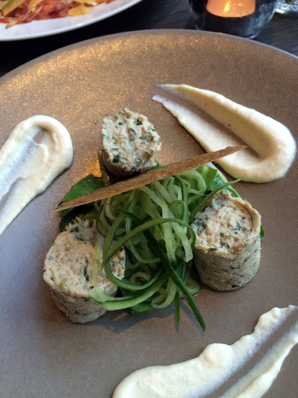 メニュにはMinced mackerel with cream of potato and smoked eelって書いてたけどウナギは何処にも感じなかったです(苦笑)