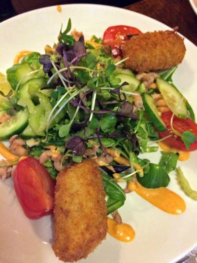 まずくはないんだけど、パサパサ目の鯖缶をミンチにし再度まとめてポテトソースでいただくっていう趣向な感じでしょうか