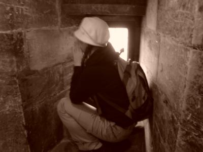 火薬塔の窓枠にハマル