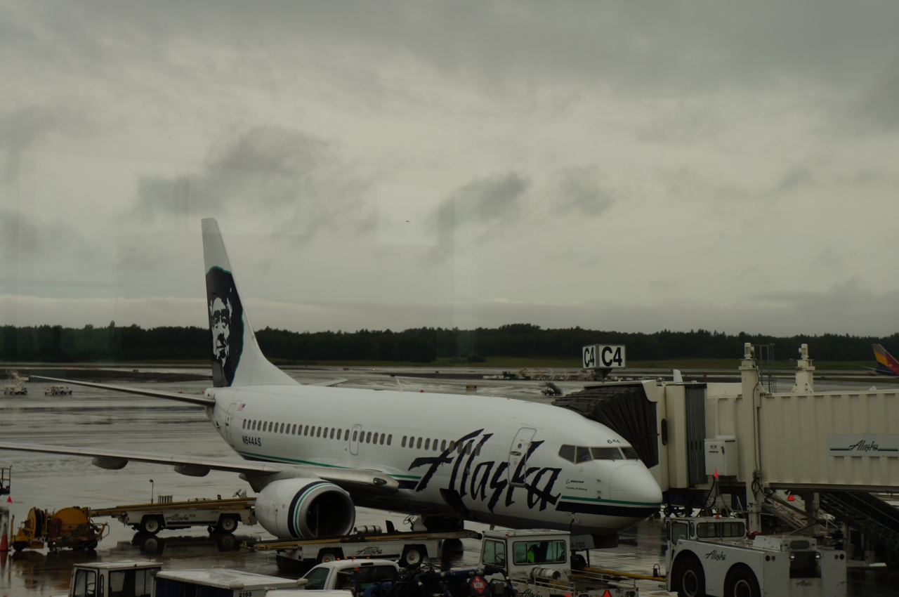 ロスからサンフランシスコ経由でアンカレッジ行の飛行機を利用しました。