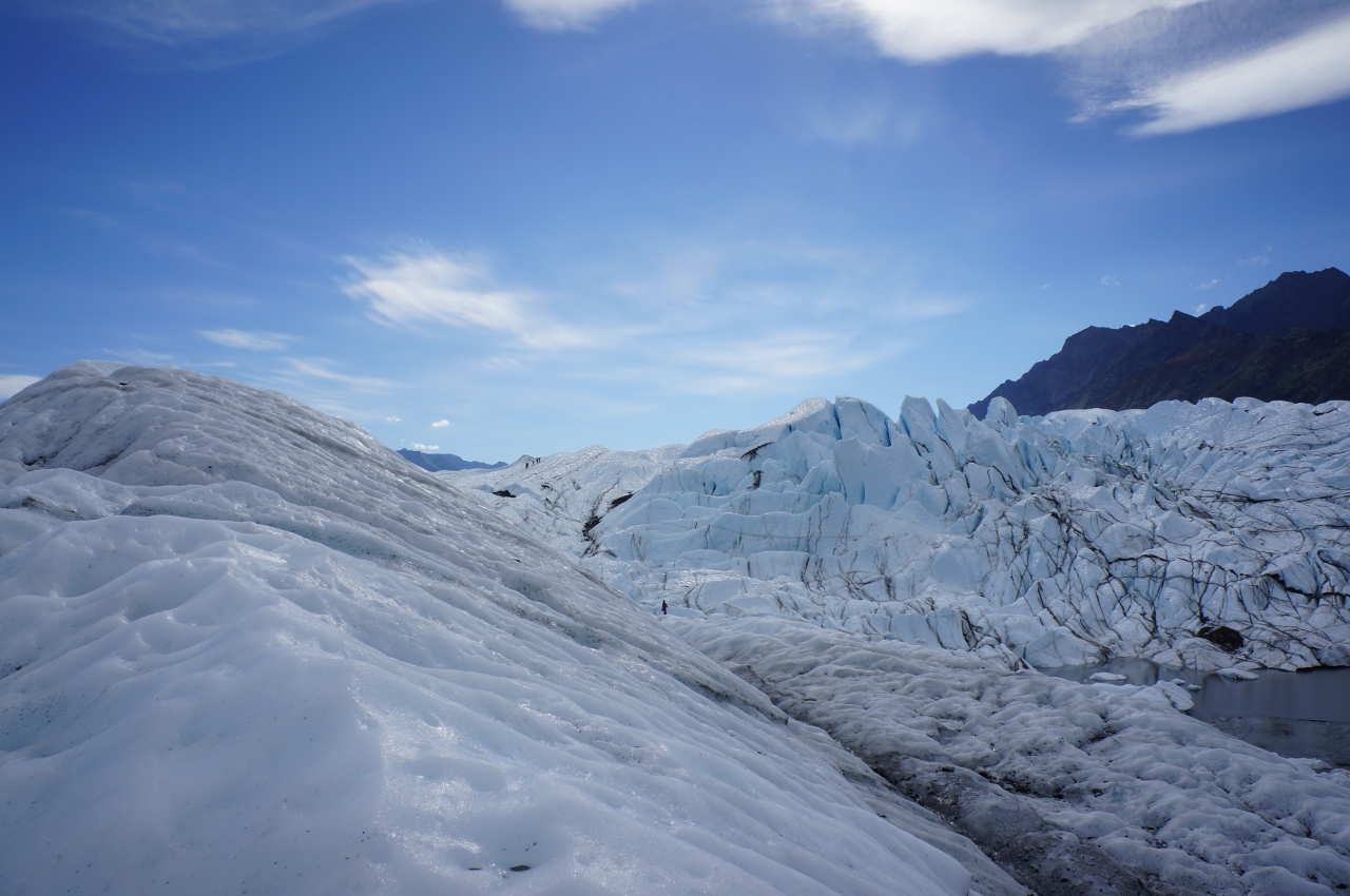 アンカレッジから車で2時間半ほどの山の中にあります。入口は私有地なので入場料がかかります(2013年8月現在$20/人)。道は砂利道ですが普通の車でトレイルの入り口まで行けます。コーンをたどっていくと安全に氷河の入り口まで行けます。それ以降は自己責任ですので歩きたい方はそれなりの装備(登山靴、アイゼン、コンパス)などが必要です。ツアーに参加した方がよさそうです。車を止めてから30分ほどで氷河に近づけるのでとっても良かったです。すこしアンカレッジからは離れていますが、デナリに行く途中に寄ったり、日帰りで行く価値あると思います。