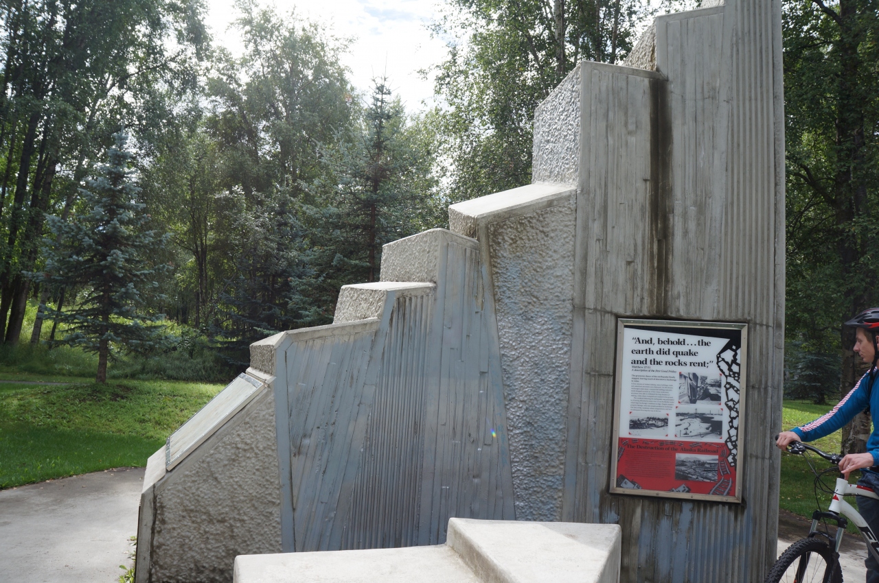 アンカレッジ街中より車で10分ほどの海沿いの公園です。1960年代に起こった大地震を記念して建てられたようです。自然豊かな公園なので天気が良ければのんびりするといいです。街中でレンタサイクルをして自転車で来ている人が多かったです。