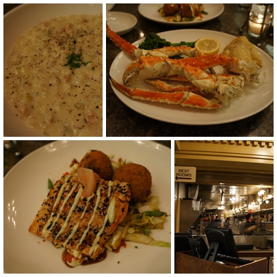 宿におすすめされたホテルでまだ待ち時間が短かったのでここにしました。景色が美しいし、混雑するので予約または早めにいかれることをおすすめします。キングクラブはもちろんおいしかったのですが、サーモン料理が和風にアレンジされていておいしかったです。今日のフレッシュな魚介がどれかウエイターさんがおすすめしてくれます。ディナーだとチップ込で$100くらいかかりましたがアラスカの夜においしい食事が食べられますよ。