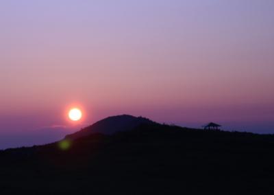 キャンパーの聖地、姫鶴平(ひづるだいら) どうやら朝日は山に邪魔されて...