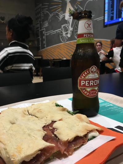 ちょっと早く着いて、夕飯がてら夫の便を待つ。パニーニ?とビール。10....