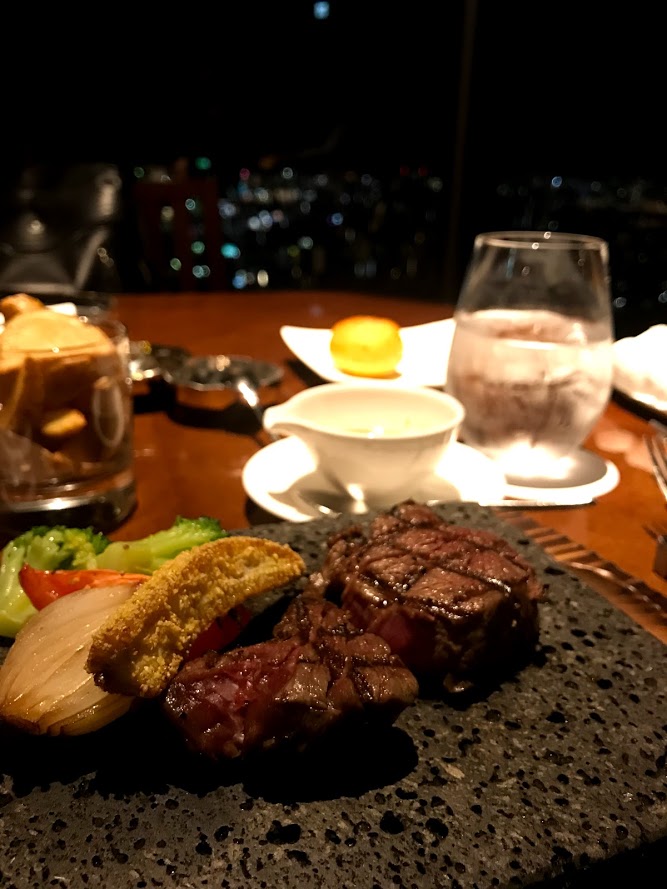 プラス9,900円で窓側の席を確約ということで、せっかくなのでお願いしました。これが正解。51階からの眺めは最高。晴れていたので遠くに筑波山が見えました。