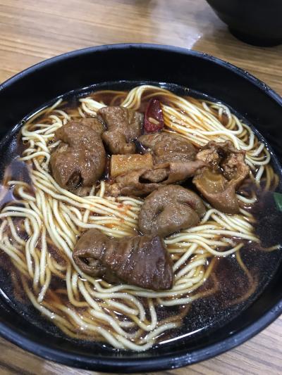 オーダーしたのはモツの麺。見た目は味が濃いような印象を受けましたが、あっさりしているし、辛過ぎず美味しい!モツは甘めに似ているので、辛いのが苦手な方でも食べられます!