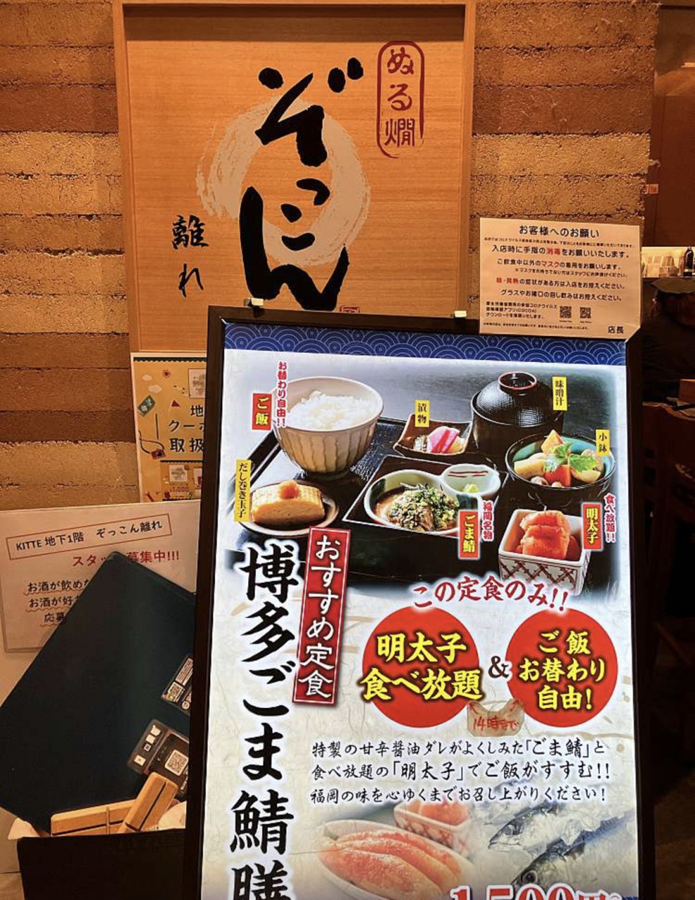 KITTE博多の地下、飲食店フロアに位置しています。