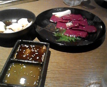 ガーリックのほどよく効いた比較的優しい味のソースで頂きます。
